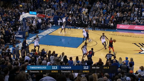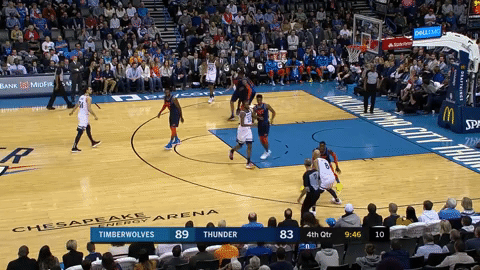 Here Westbrook draws all defensive attention to the lane leaving Abrines wide open for the go-ahead trey, however, Abrines is unable to connect.
